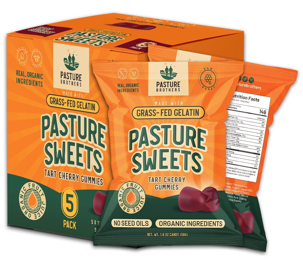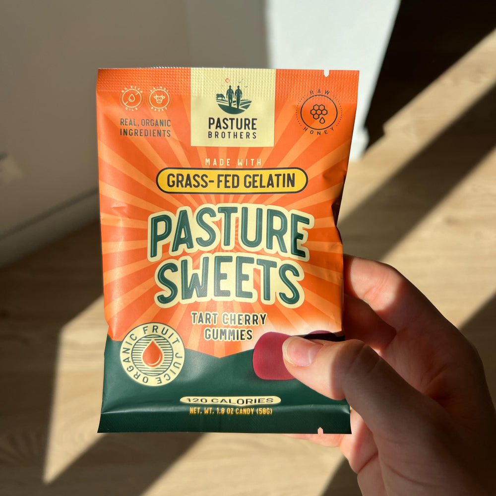 That's why we created Pasture Sweets—gummies crafted with grass-fed gelatin, organic fruit juice, and raw honey that deliver 4g of protein in every bag.